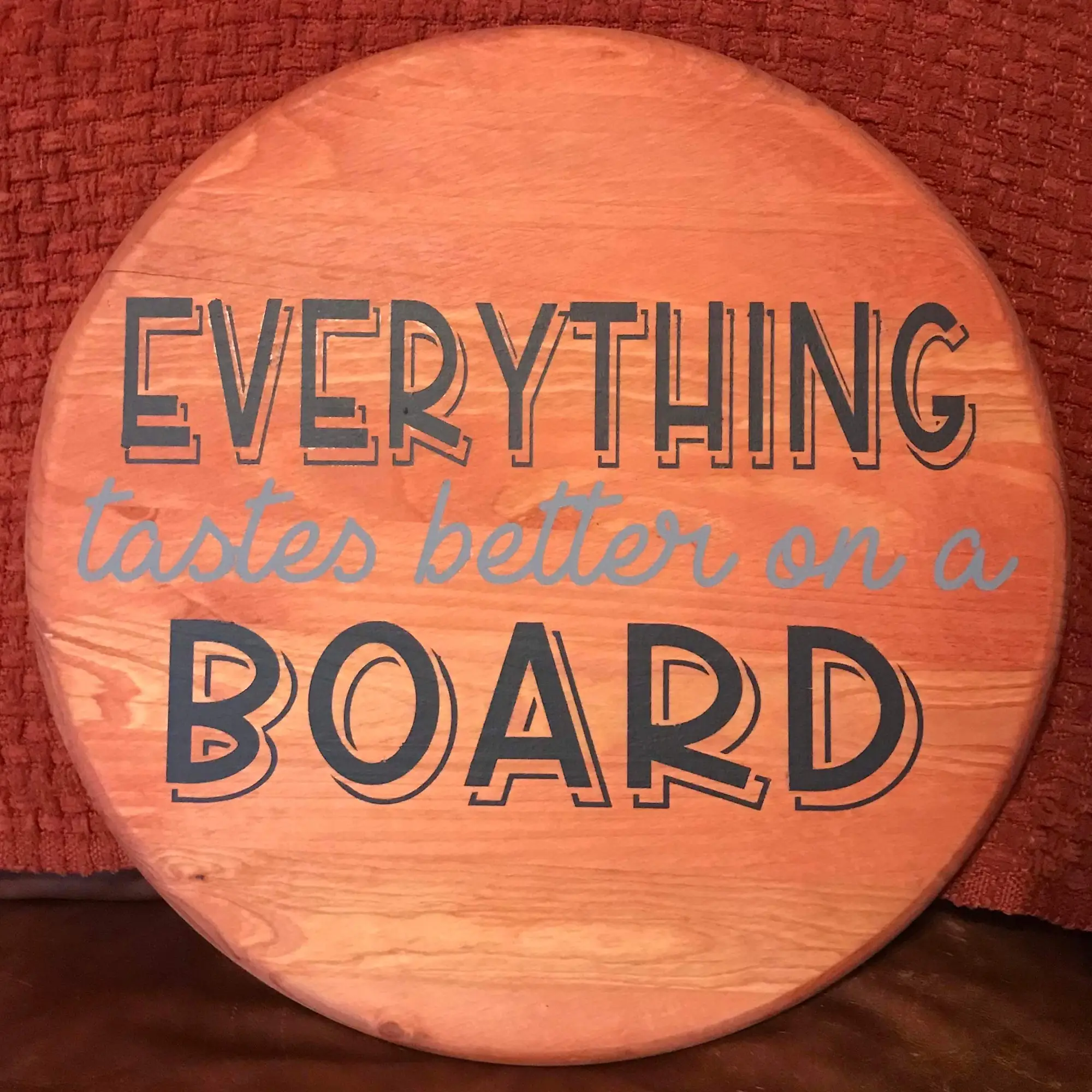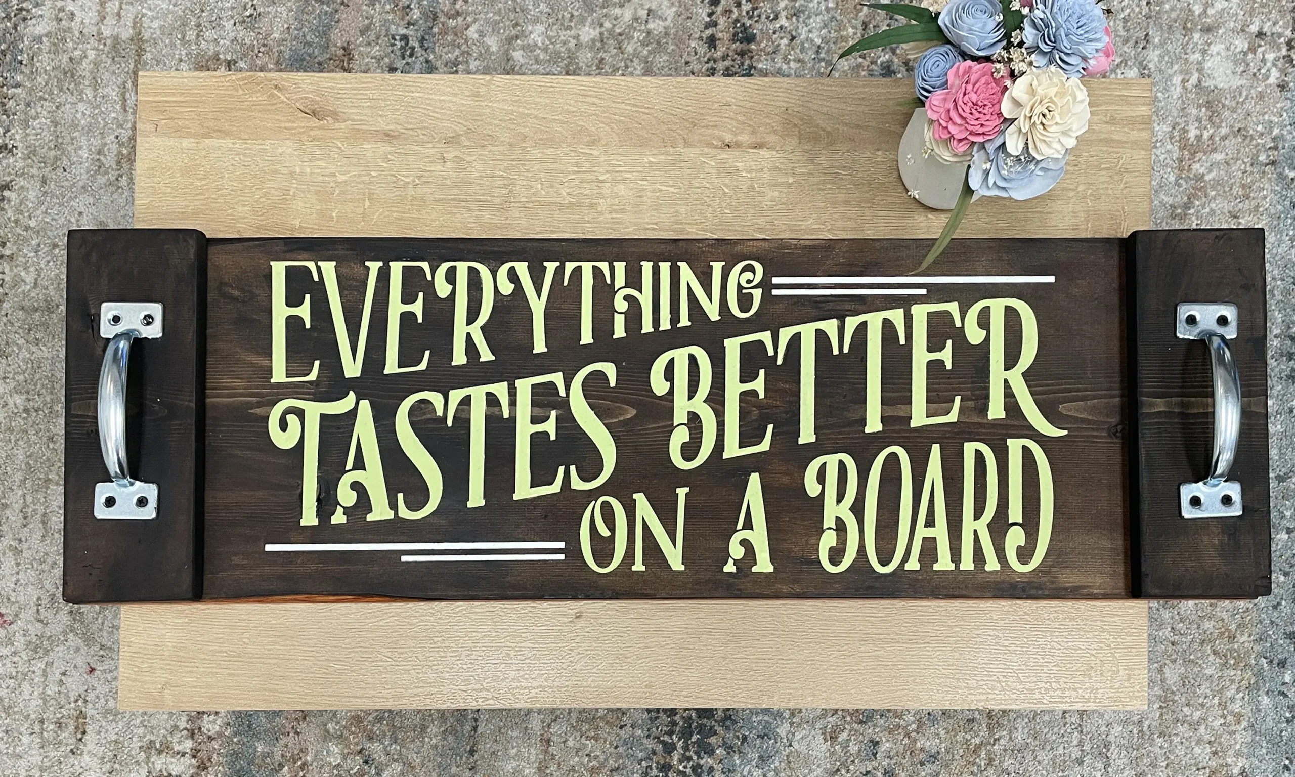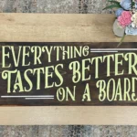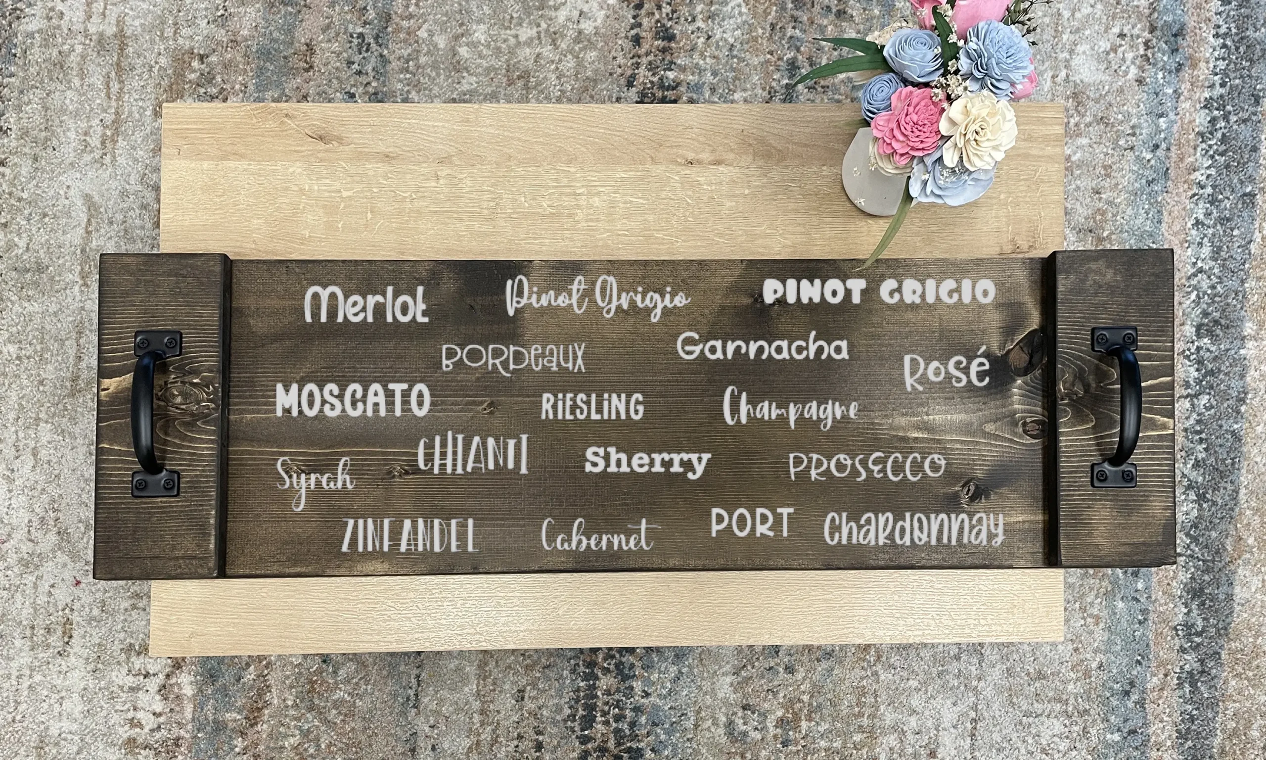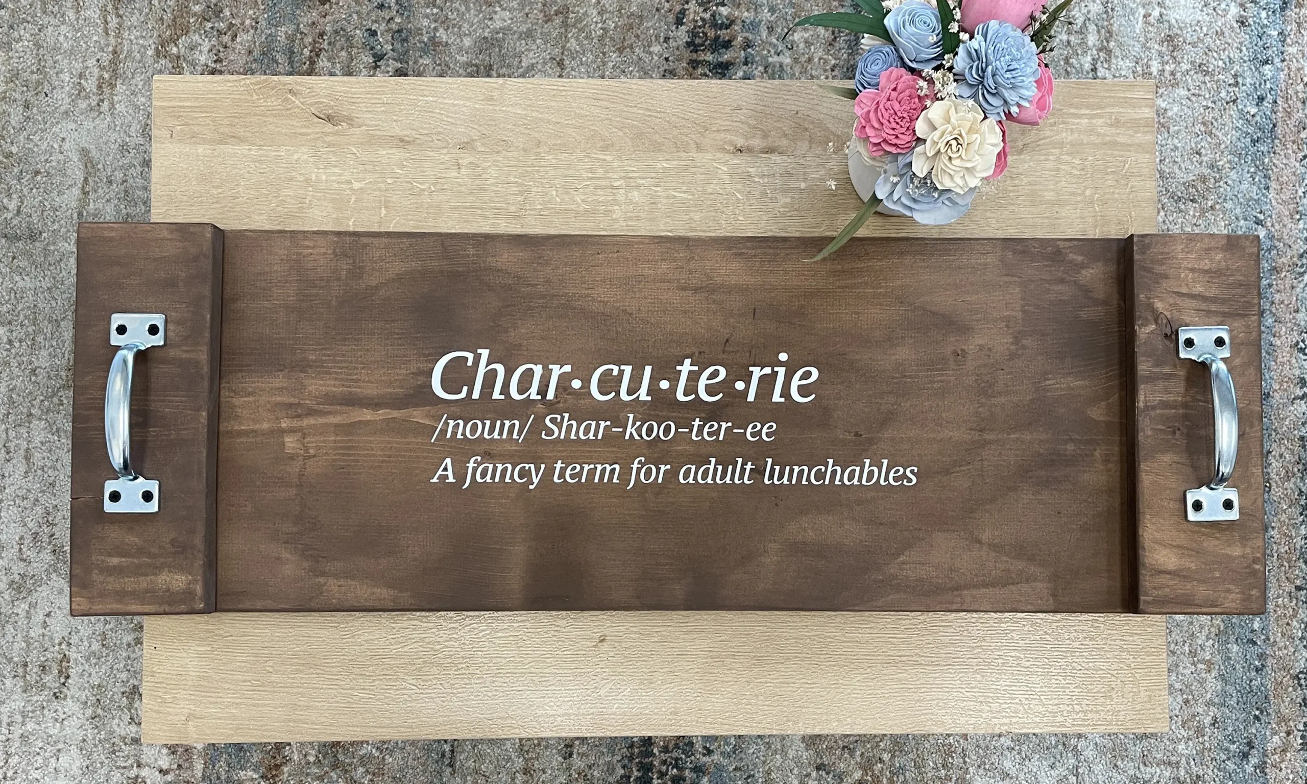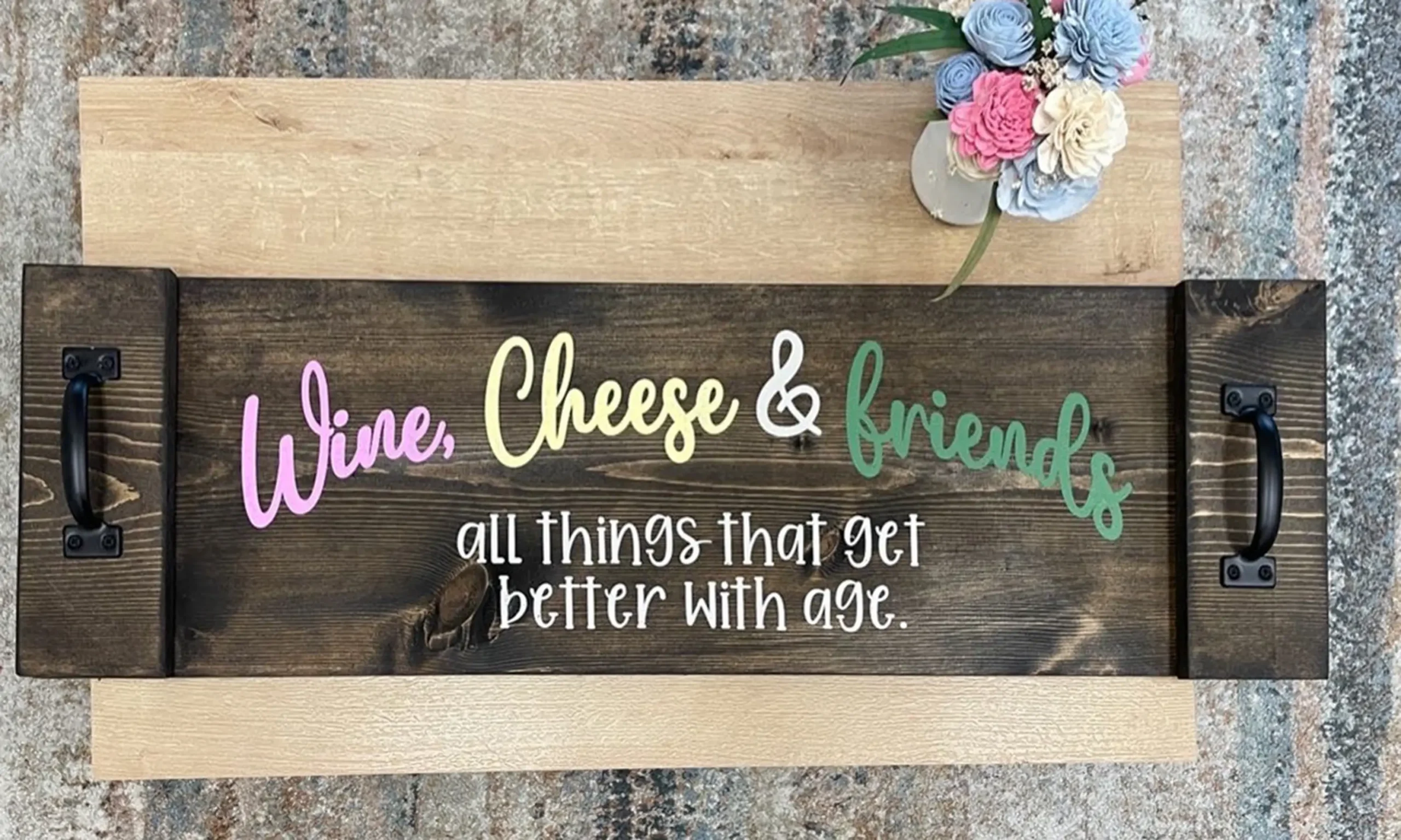 Charcuterie trays are all the rage these days. Entertain your guests with a custom board that is sure to wow the crowd! When you book your crafting session you can choose your board size and a quote, wine or food design, name, or even a snarky saying to customize your board. Once your design is set we will walk you through the process of painting your gorgeous board that will be the feature of any party.